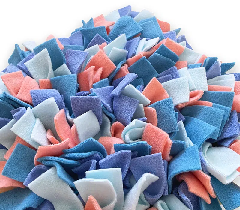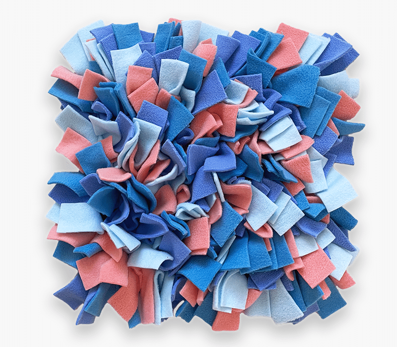 Mata węchowa szyta w rozmiarze około 40 cm x 40 cm wykonana jest ręcznie, z poliestrowej podstawy oraz dzianiny polarowej. To genialna zabawka dla Waszego najważniejszego członka rodziny. Każdy psiak, niezależnie od rozmiaru, pokocha wyszukiwanie swoich ulubionych smaczków w gąszczu polarowych frędzli.