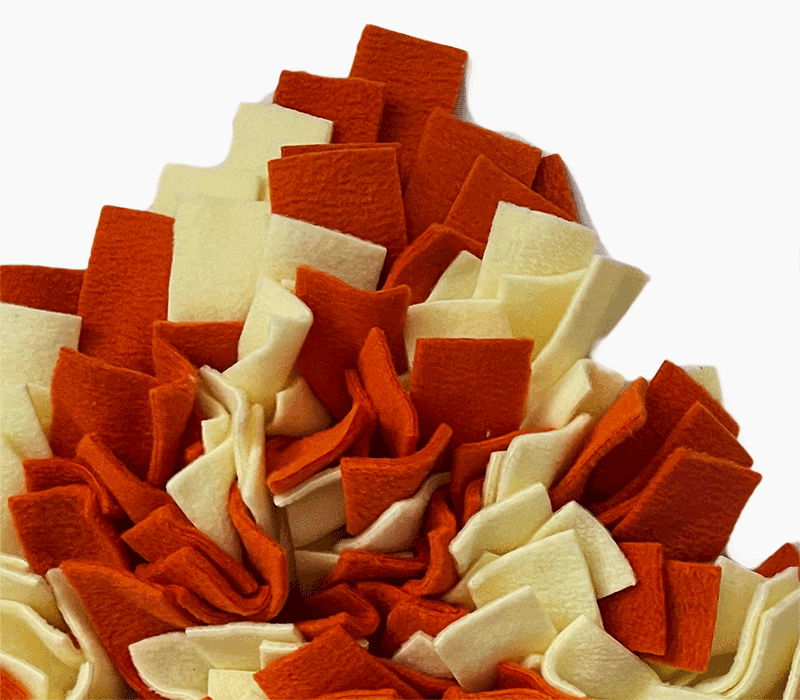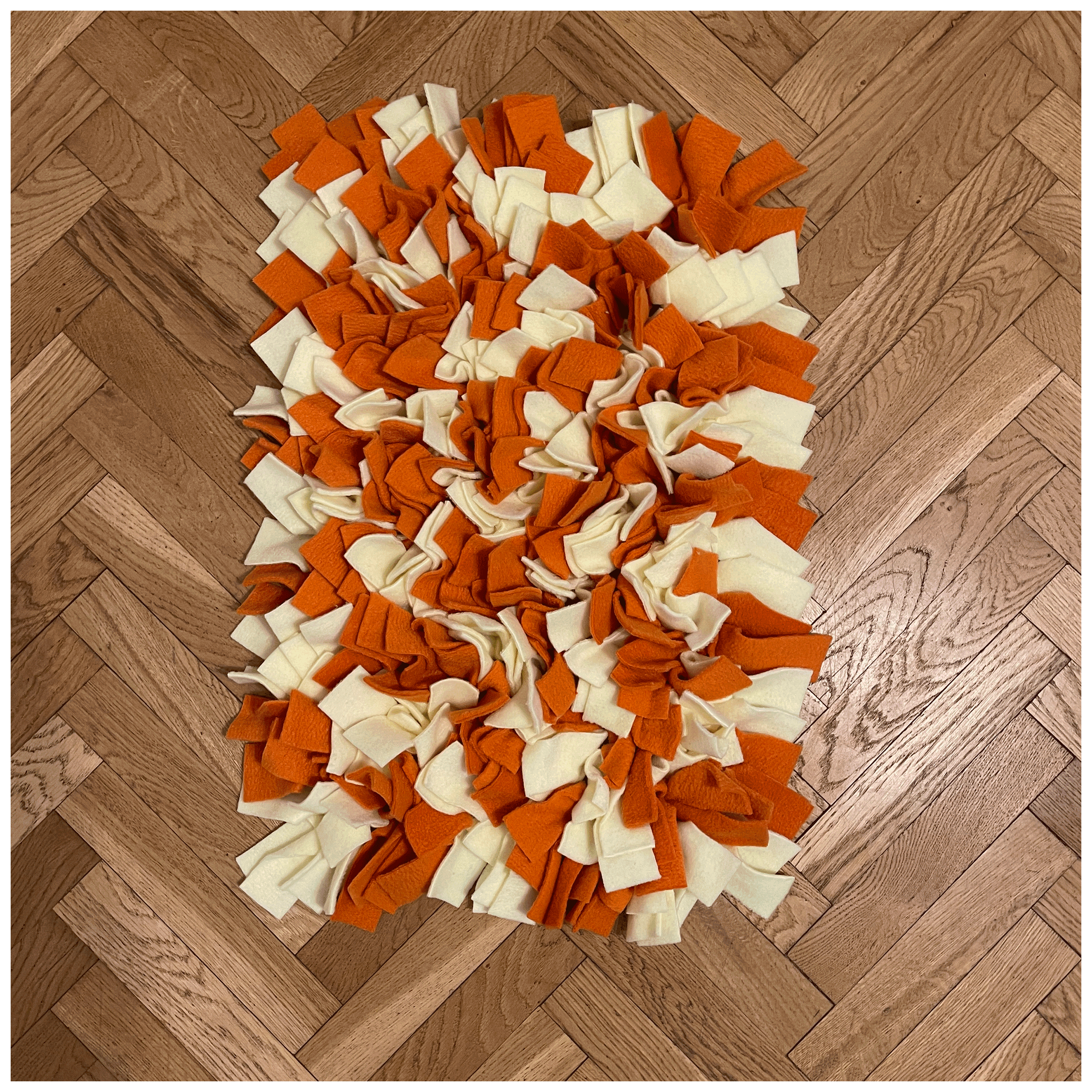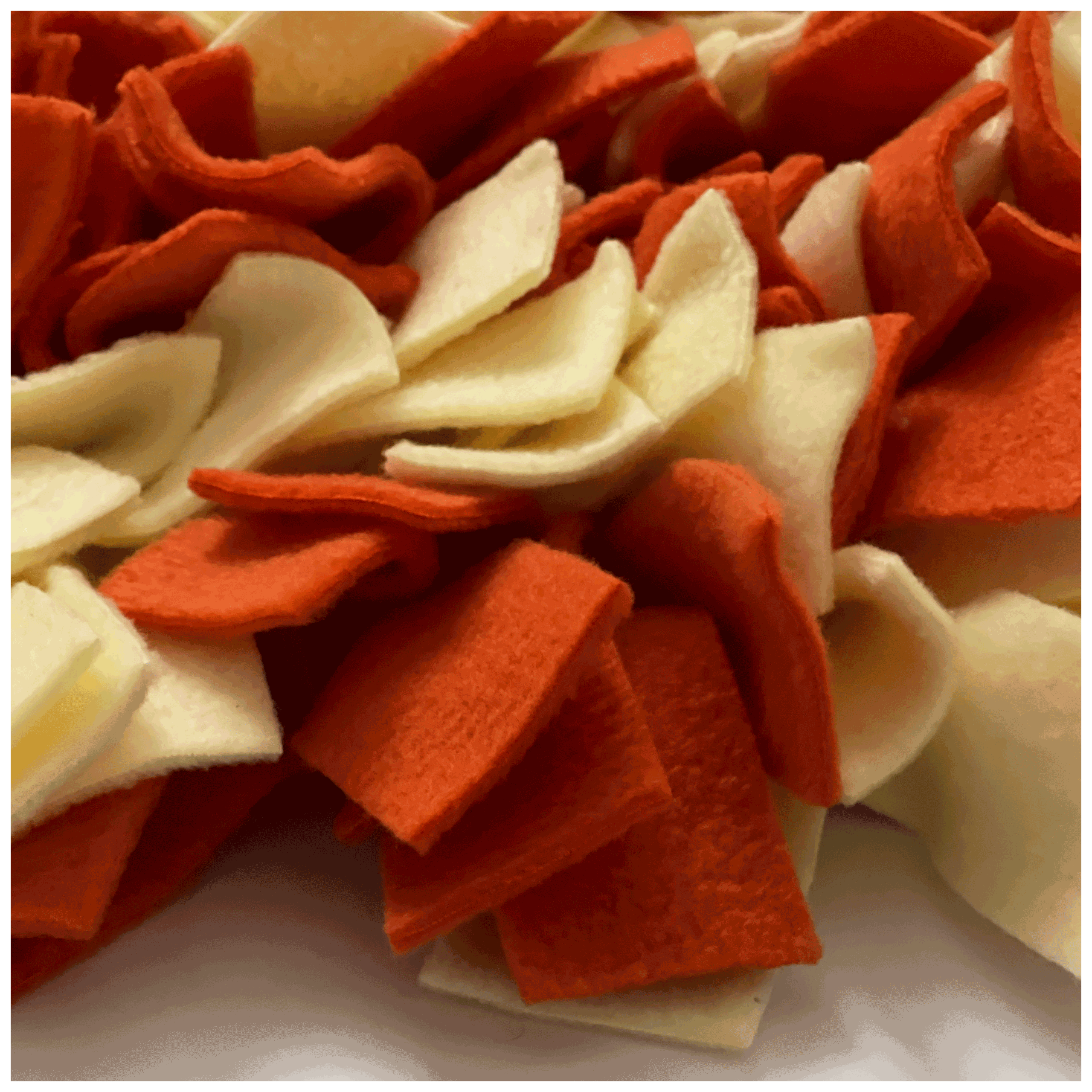 Mata węchowa szyta w rozmiarze około 40 cm x 60 cm wykonana jest ręcznie, z poliestrowej podstawy oraz dzianiny polarowej. To genialna zabawka dla Waszego najważniejszego członka rodziny. Każdy psiak, niezależnie od rozmiaru, pokocha wyszukiwanie swoich ulubionych smaczków w gąszczu polarowych frędzli.