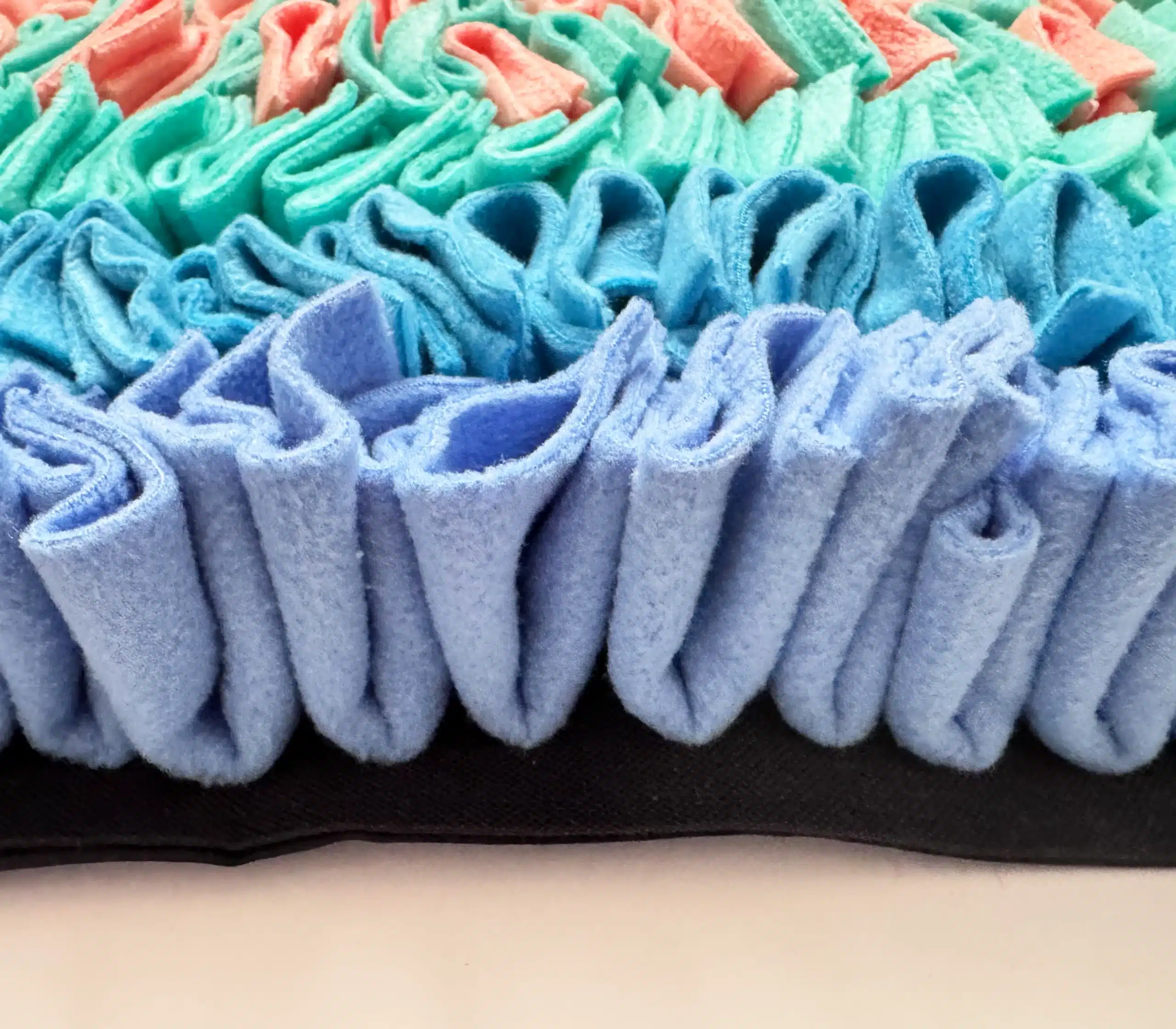 Mata węchowa szyta w rozmiarze około 40 cm x 40 cm wykonana jest ręcznie, z poliestrowej podstawy oraz dzianiny polarowej. To genialna zabawka dla Waszego najważniejszego członka rodziny. Każdy psiak, niezależnie od rozmiaru, pokocha wyszukiwanie swoich ulubionych smaczków w gąszczu polarowych frędzli.